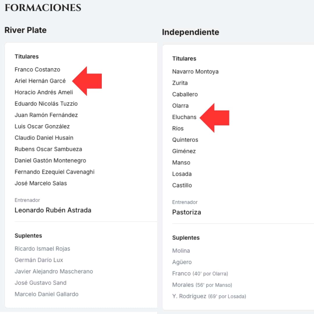 La camiseta fue cambiada al finalizar el partido por Juan Eluchans con Ariel Garcé.