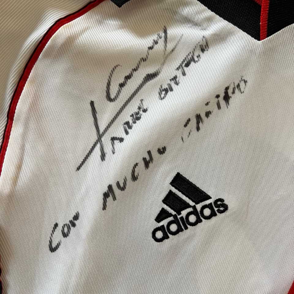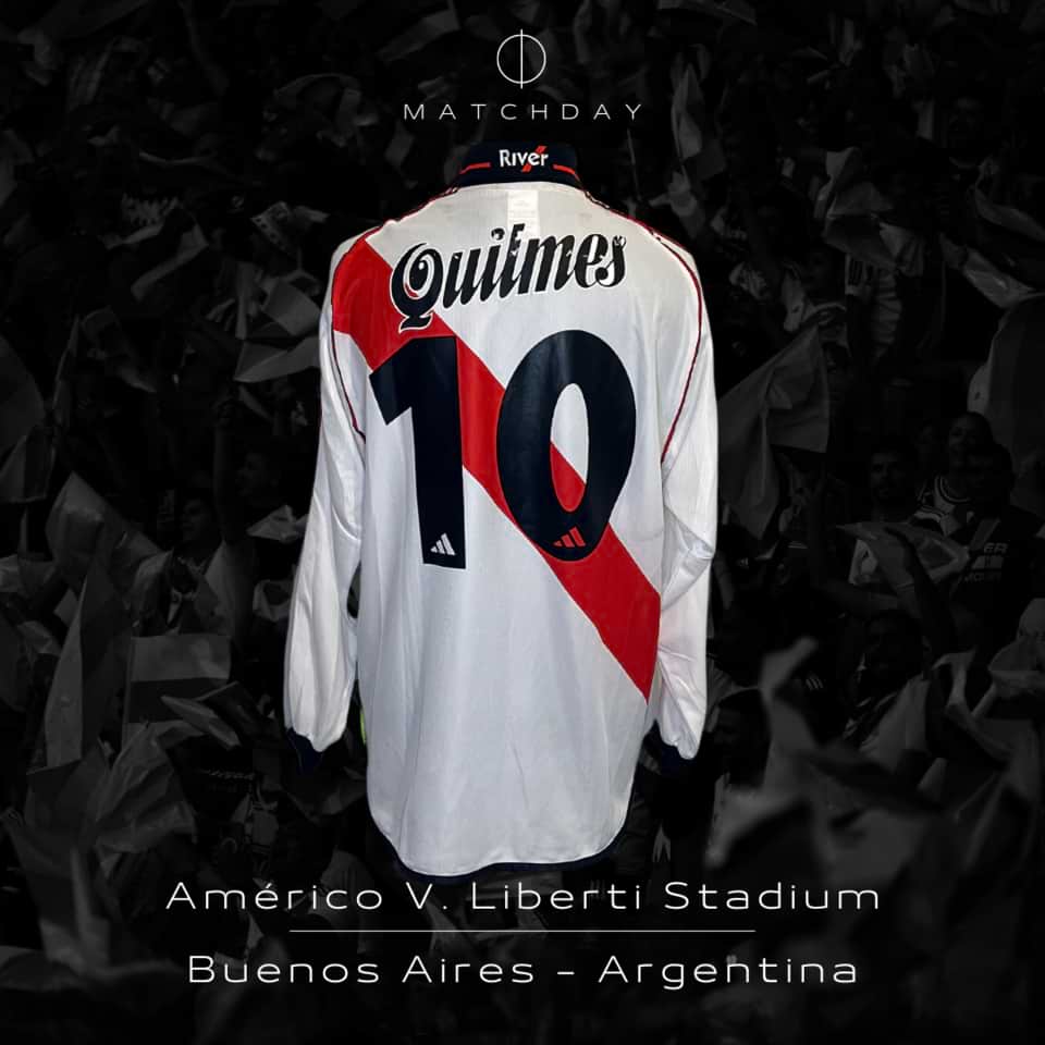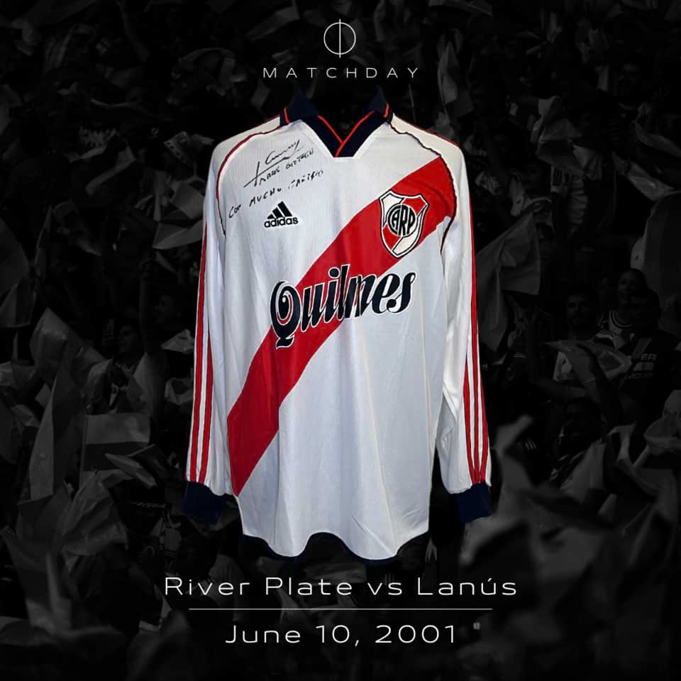 Camiseta mangas largas usada por el ídolo Riverplatense Ariel Ortega versus Lanus en el Torneo Clausura 2001, conseguida a través de un ex-dirigente de River.
