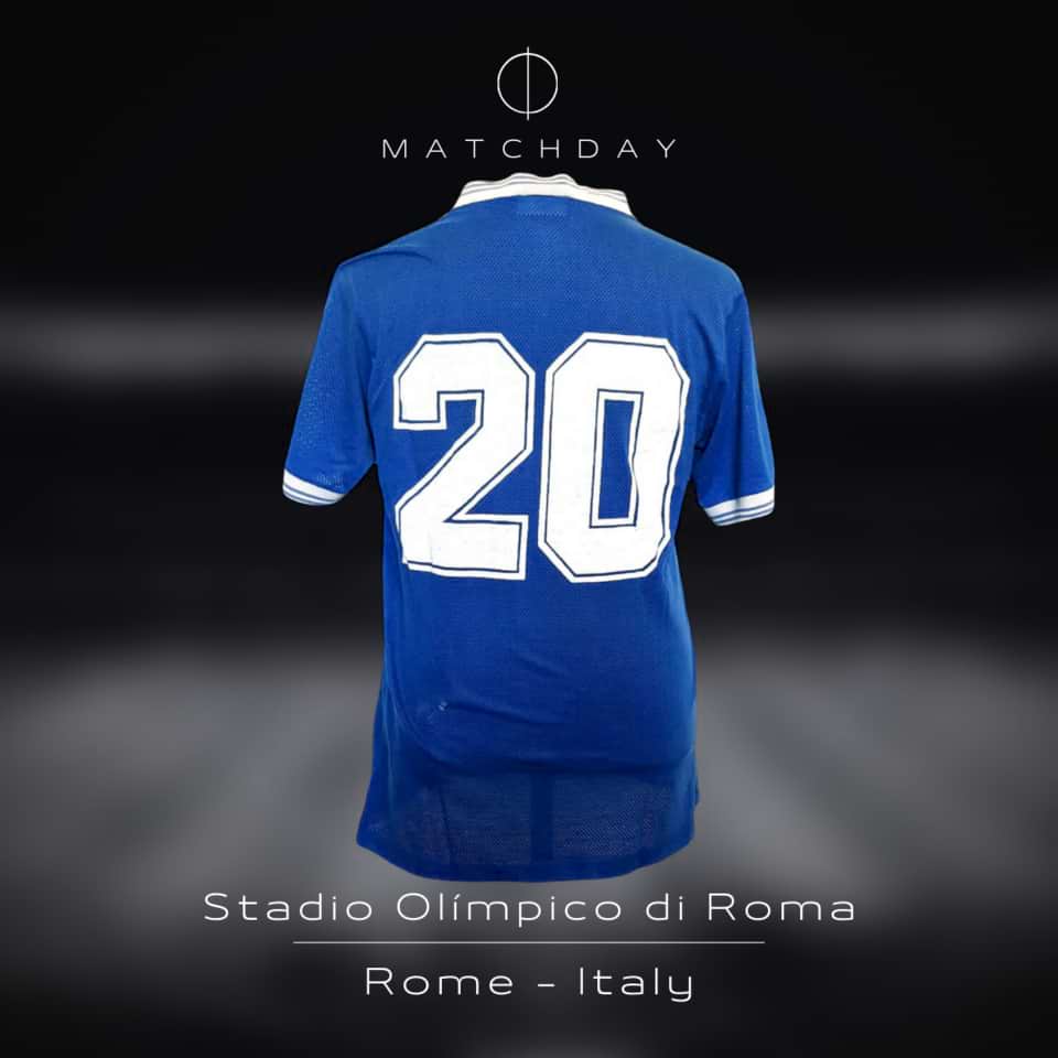 Runner up Argentina match Worn jersey of Juan Simón #20 for Italia World Cup final vs Germany, july 8,1990 at Olimpyc Rome Stadium.