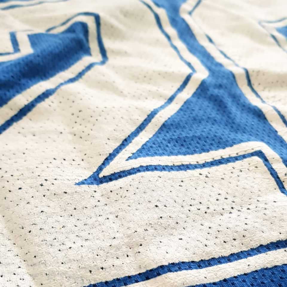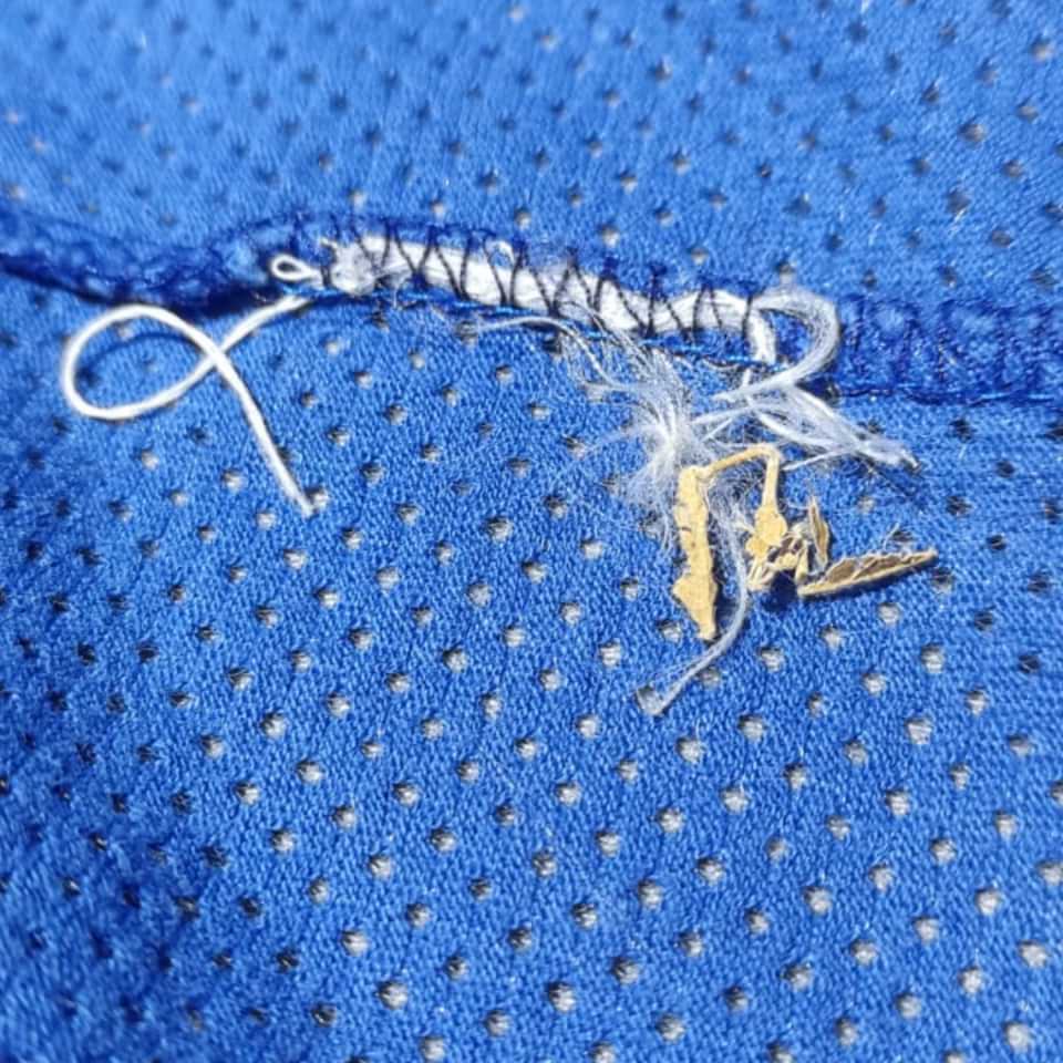 The jersey still has grass on its inside seam from the Olympic Stadium in Rome.