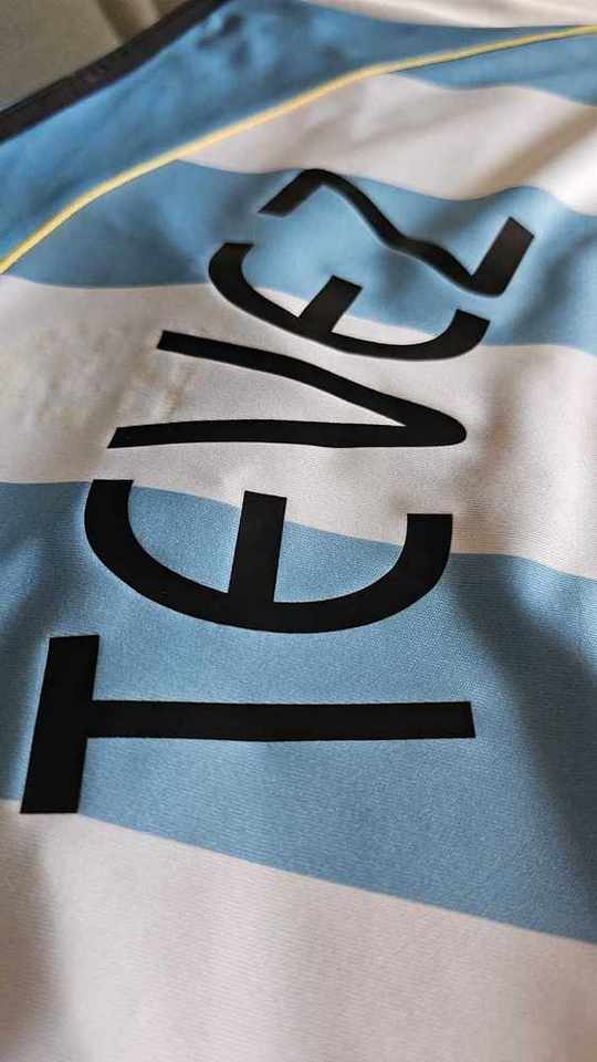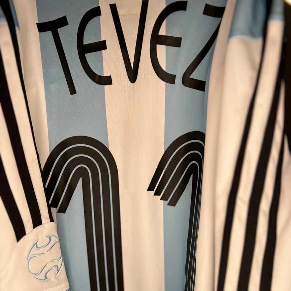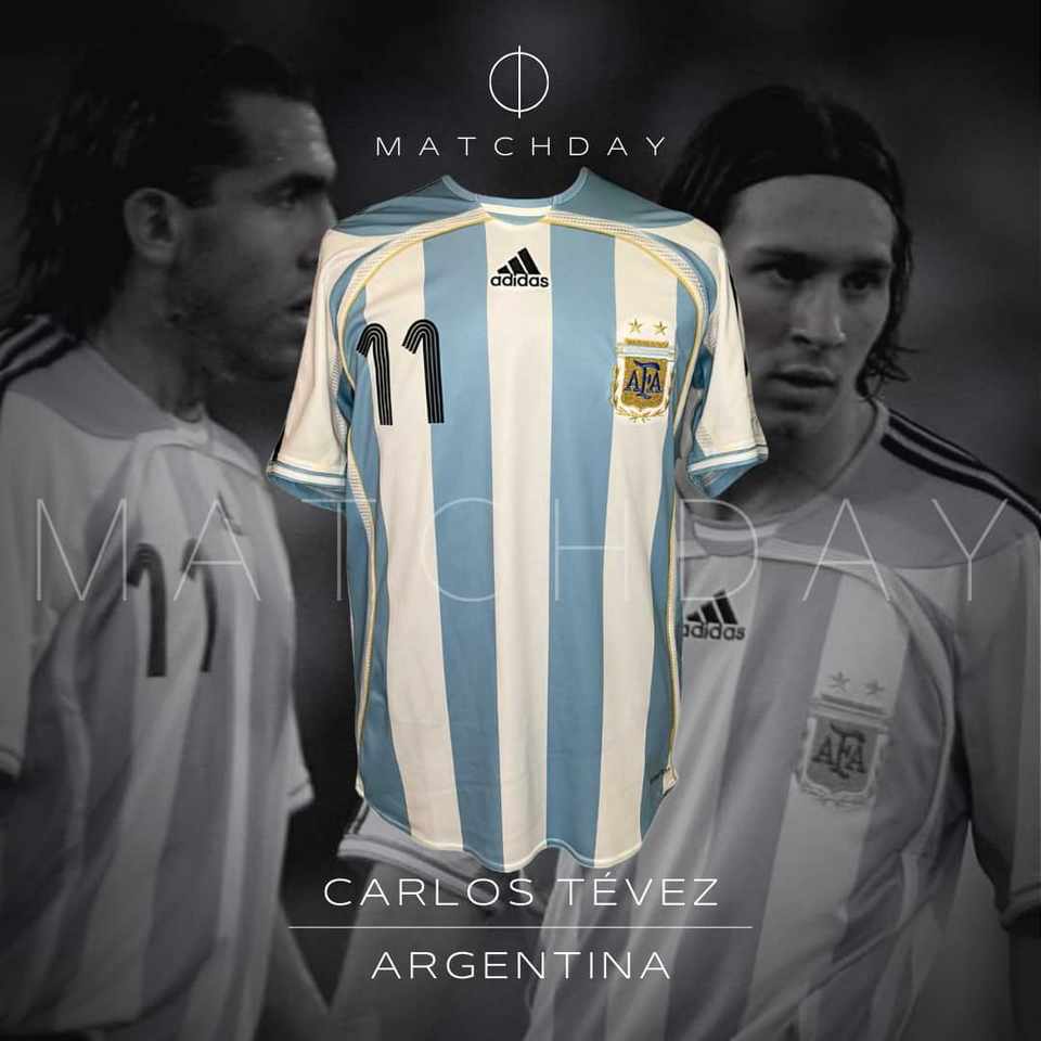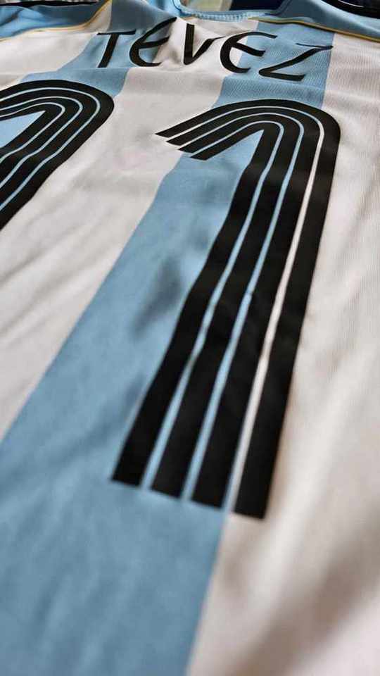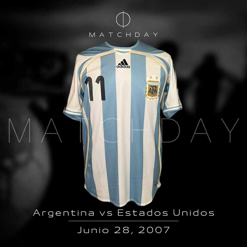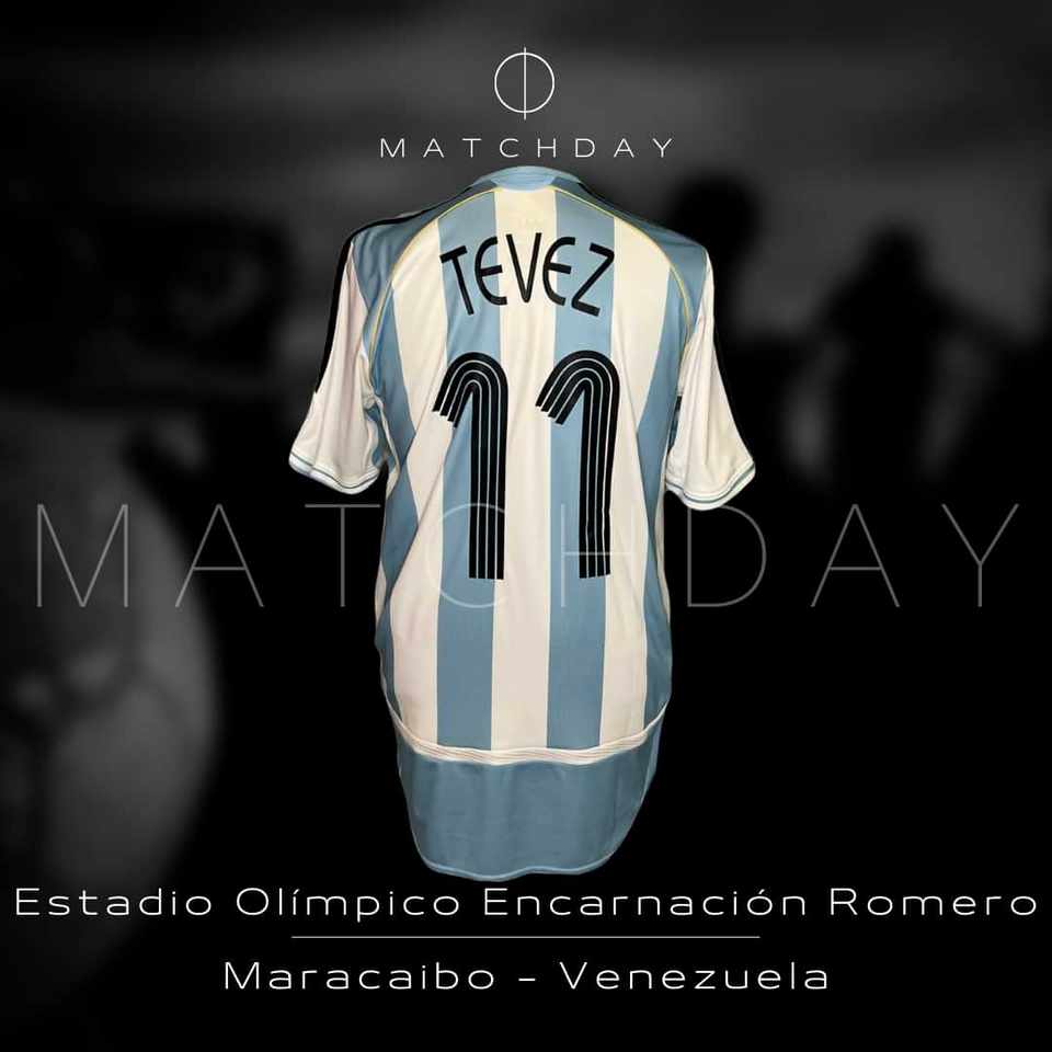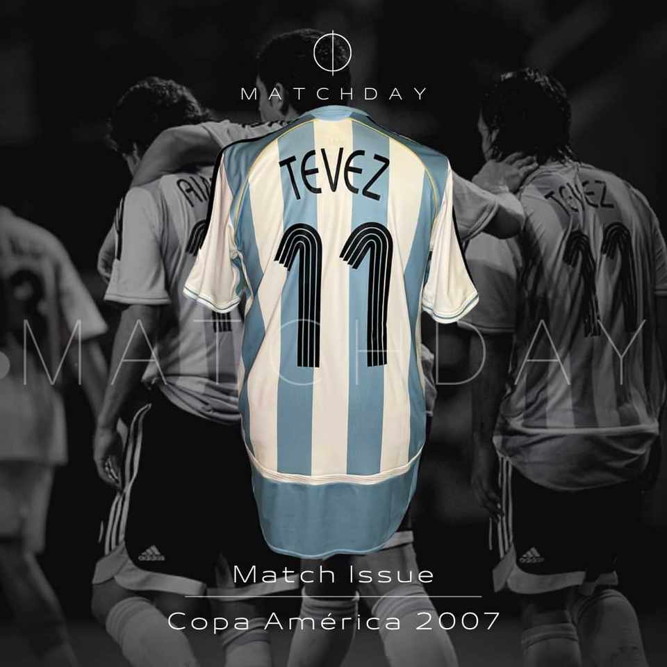 Camiseta preparada para Carlos Tevez en la Copa America 2007 para el encuentro en Argentina y Estados Unidos. Fue obtenida luego de la competencia a traves de un empleado de AFA.