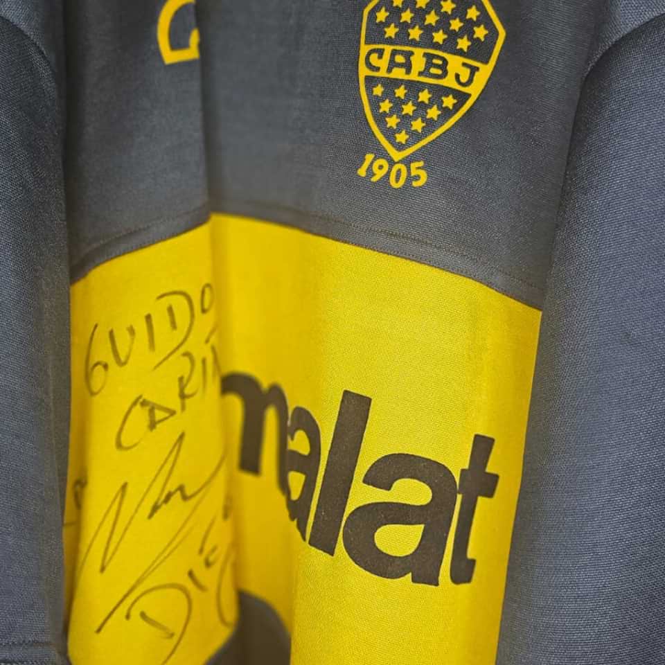 La camiseta fue obtenida a través de un integrante del cuerpo técnico de Boca en el año 1995.