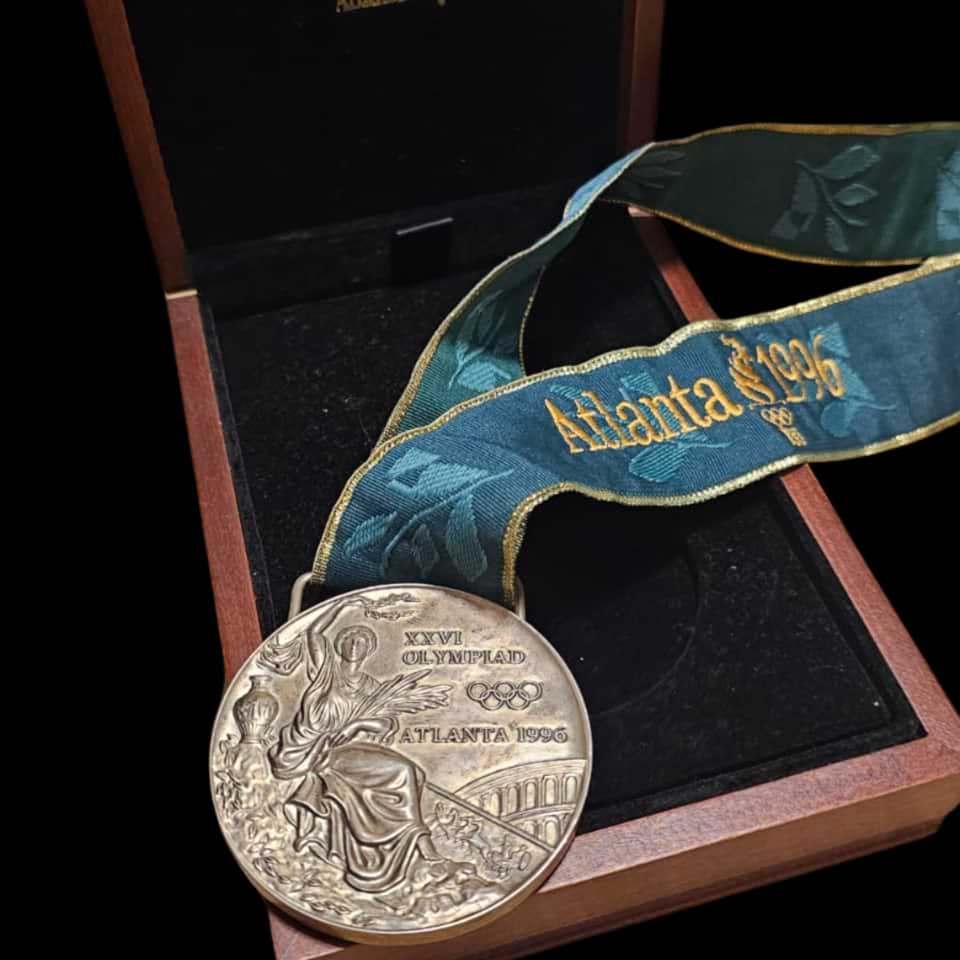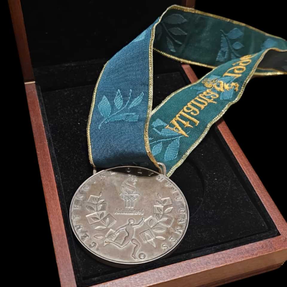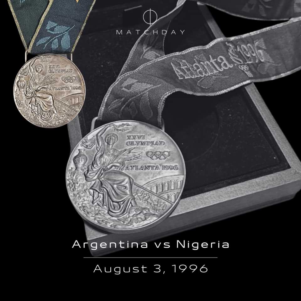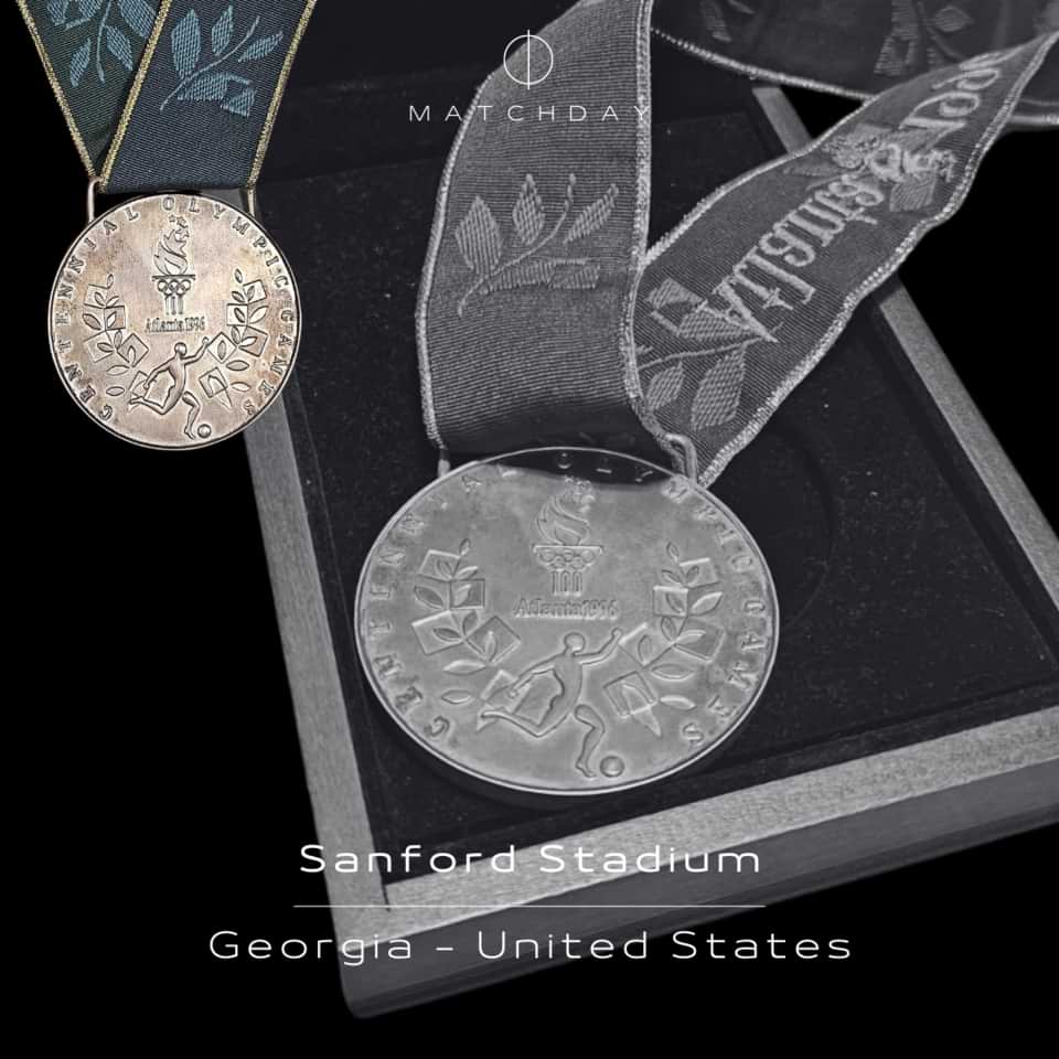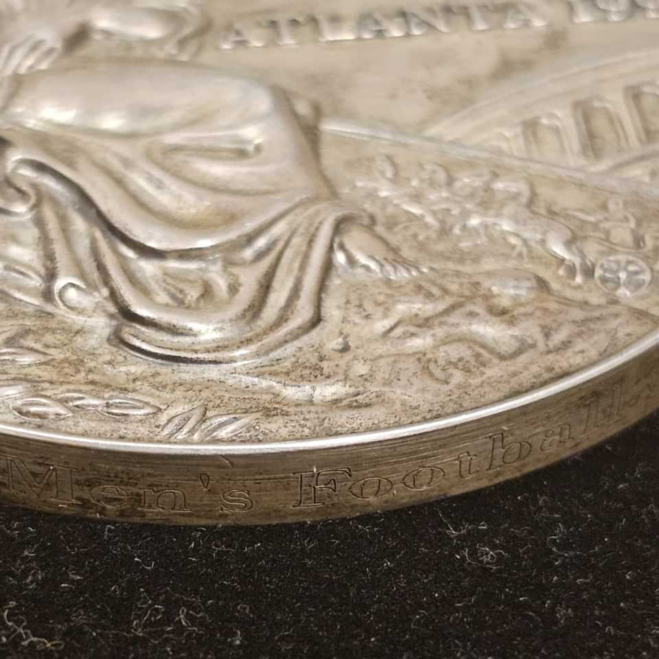 Incredible Atlanta 1996 Men’s football silver Olimpyc Medal never been seen at auction in this state of preservation and complete with the orignal ribbon and box.