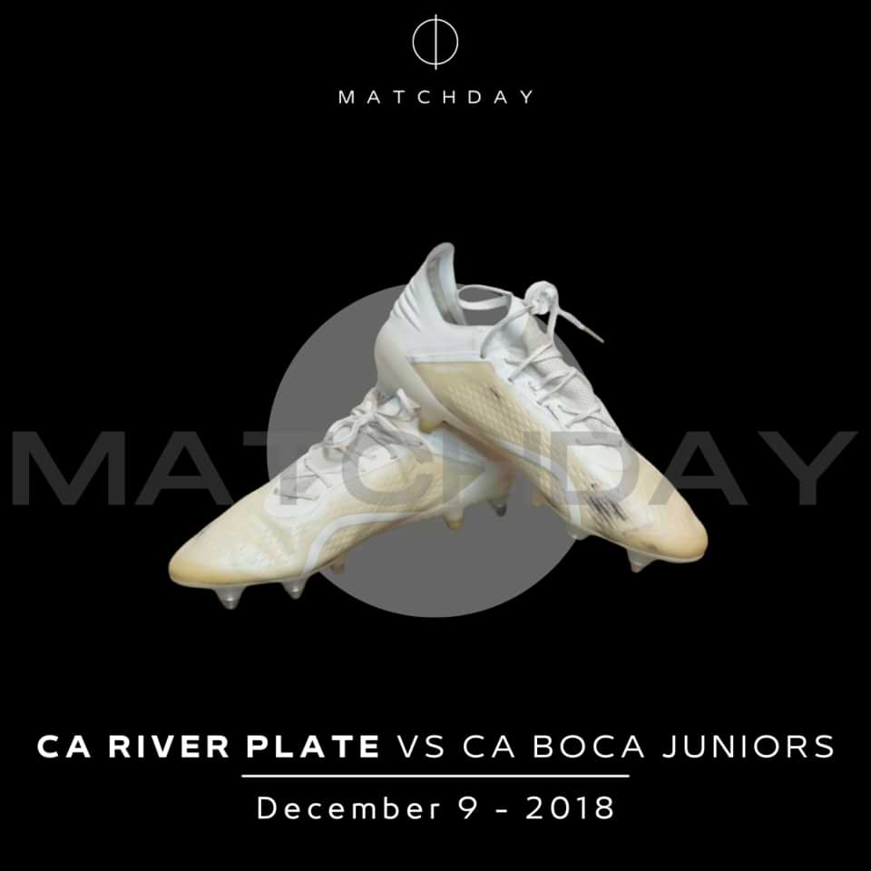Match worn boots by Jonatan Maidana in the 2018 Copa Libertadores final at the Santiago Bernabeu Stadium. They were delivered by an employee close to Maidana.