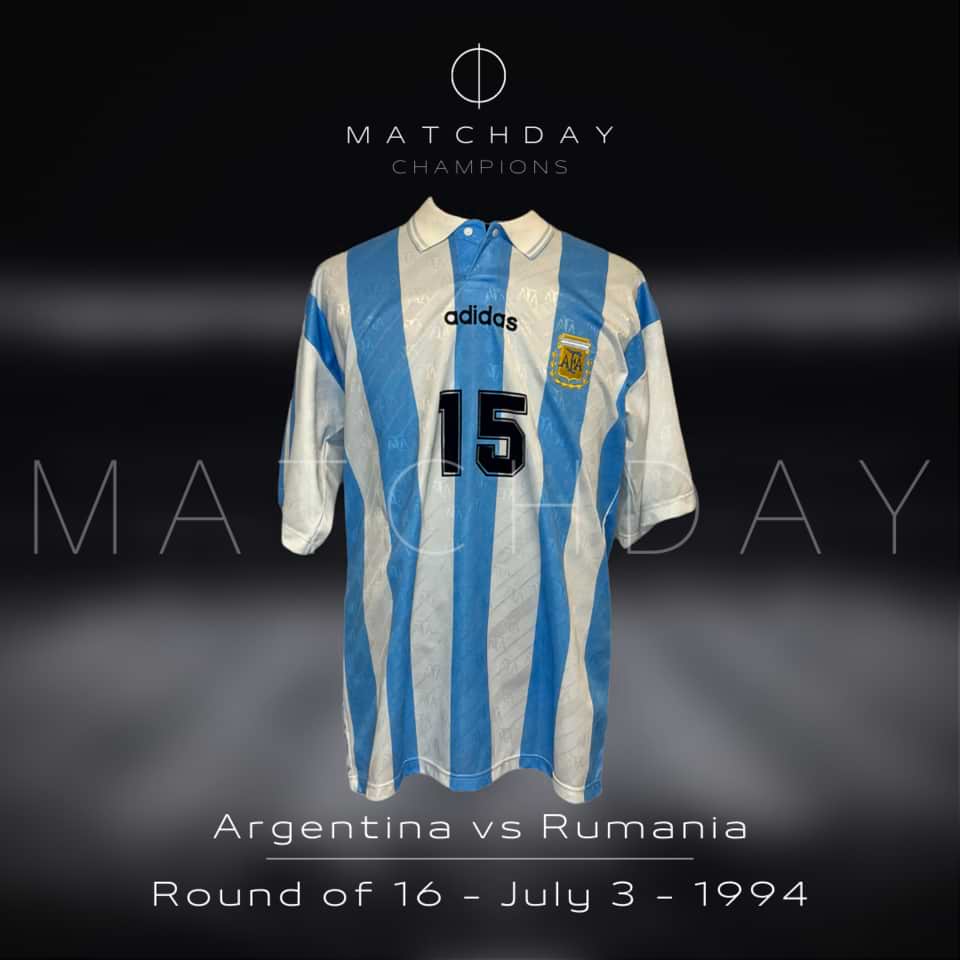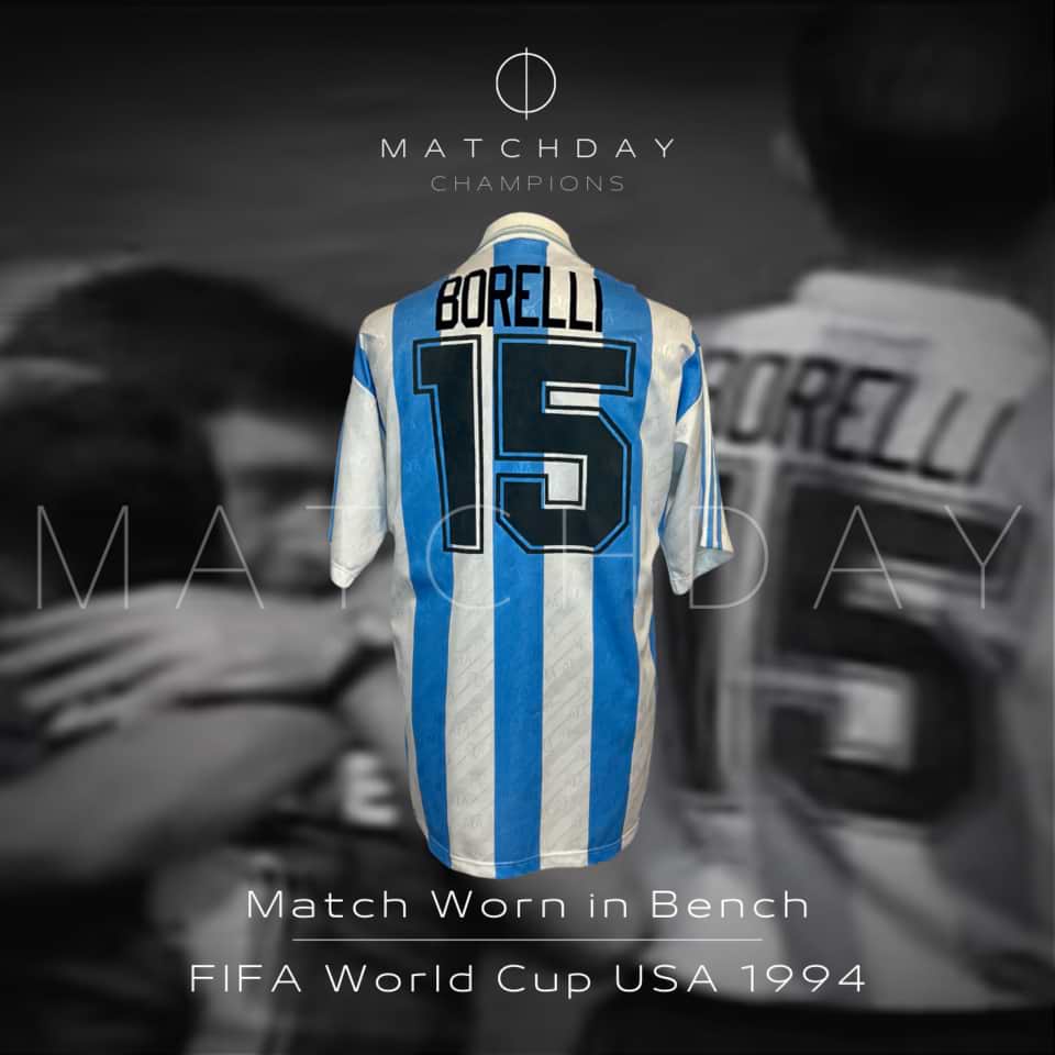 Incredible match worn in bench jersey by Jorge Borelli in the match against Rumania, played on July 3, during the 1994 World Cup in USA.