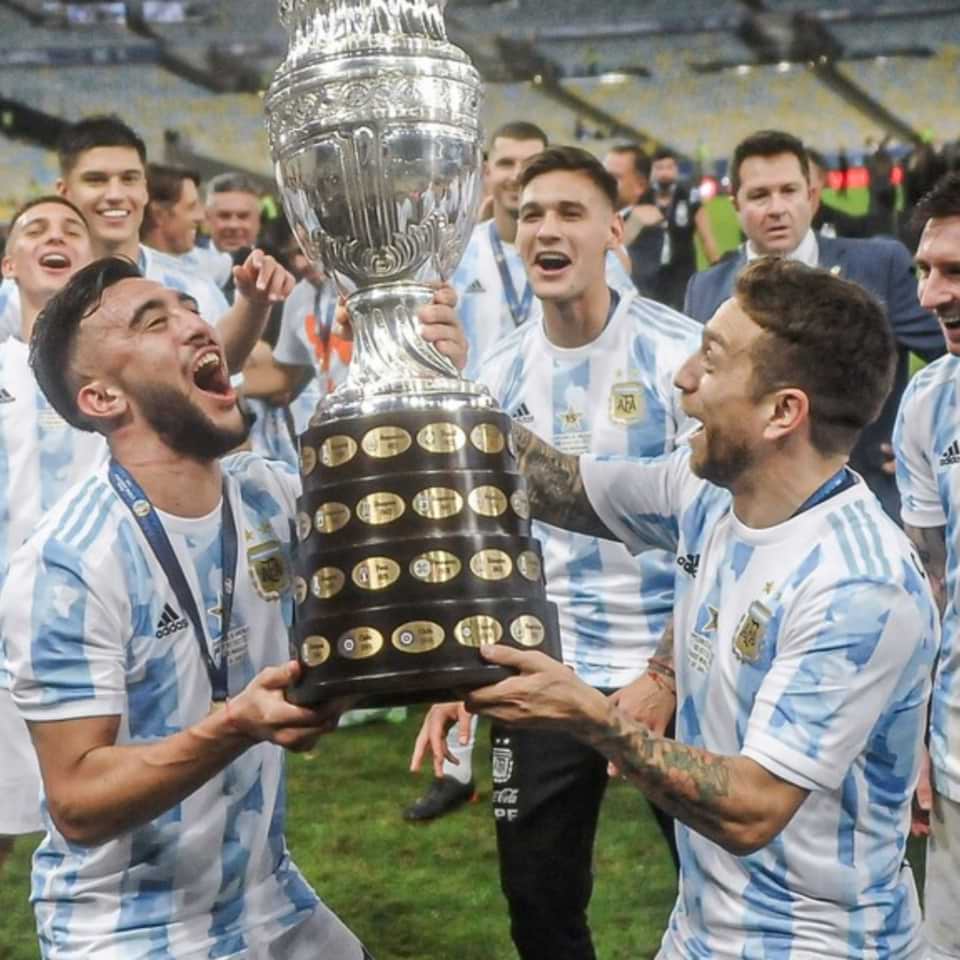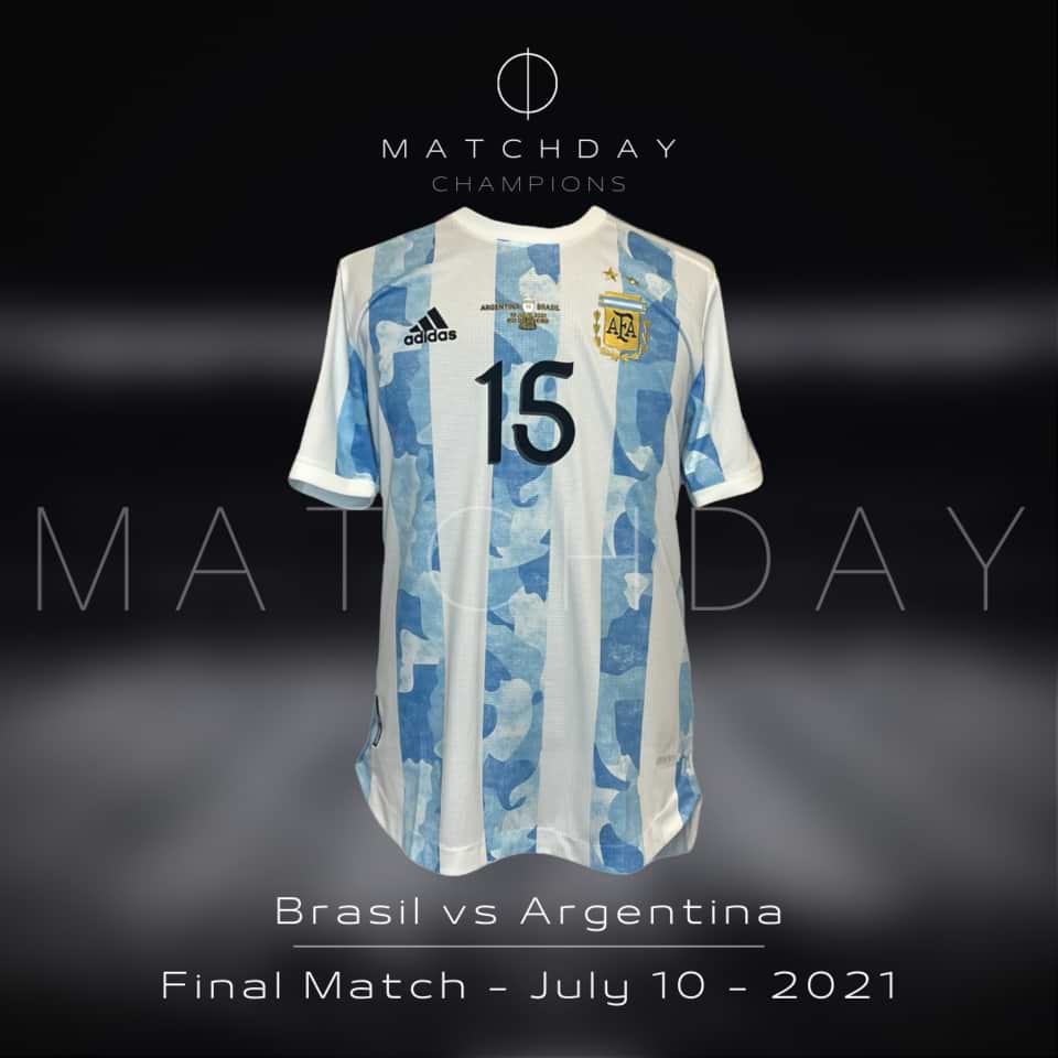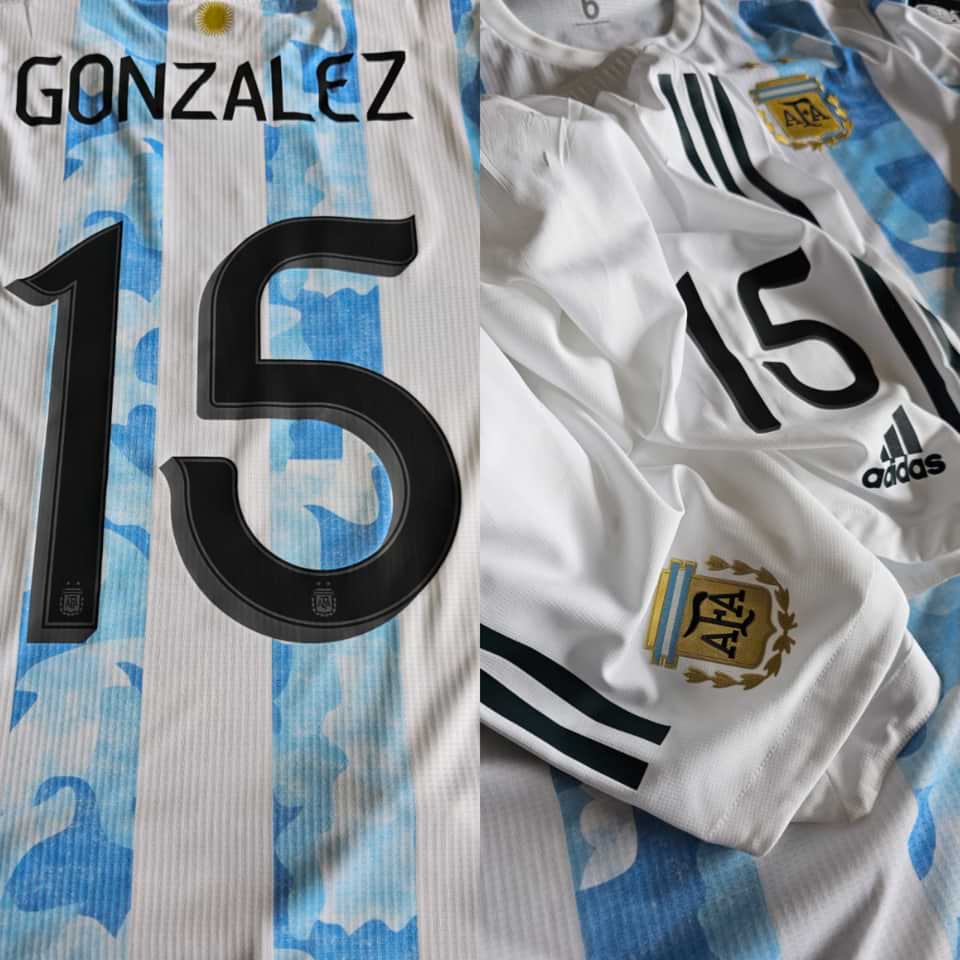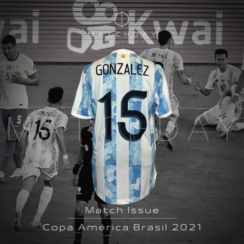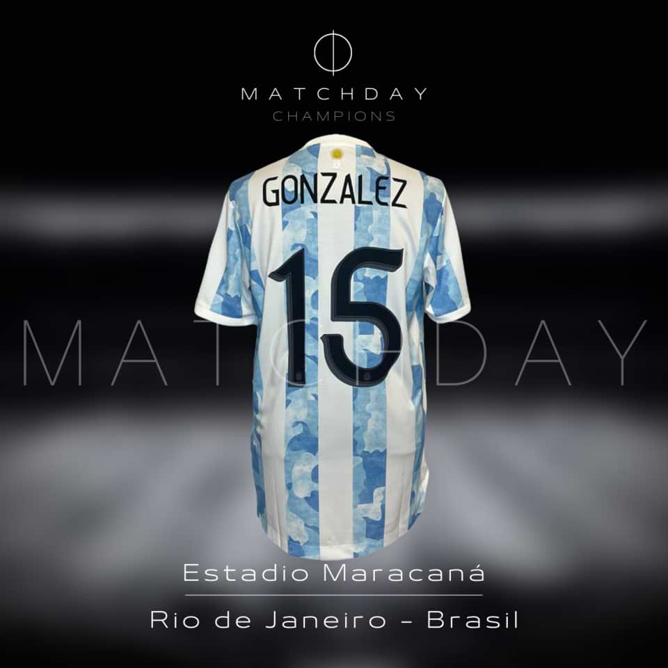 Amazing Nico Gonzalez Match issue Kit (Jersey + shorts) prepared for Copa America Final in Brasil on 2021.