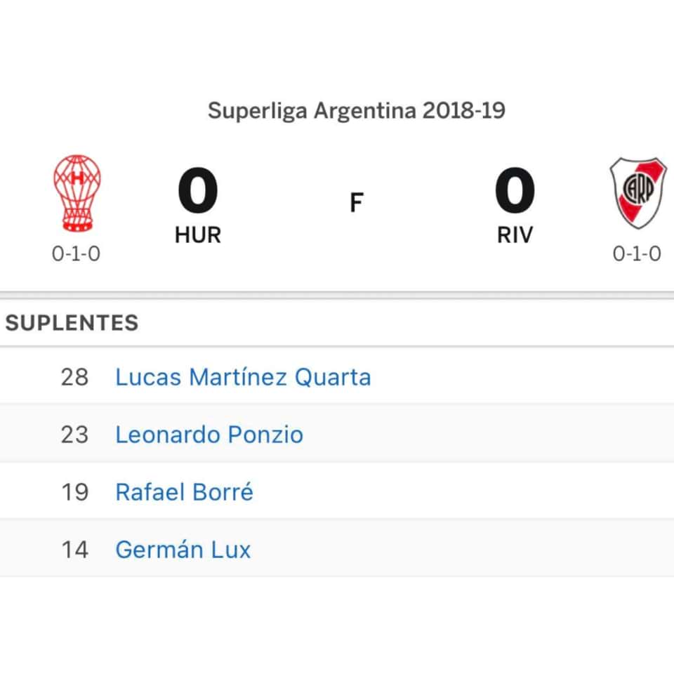 Match: Huracan 0 – 0 River