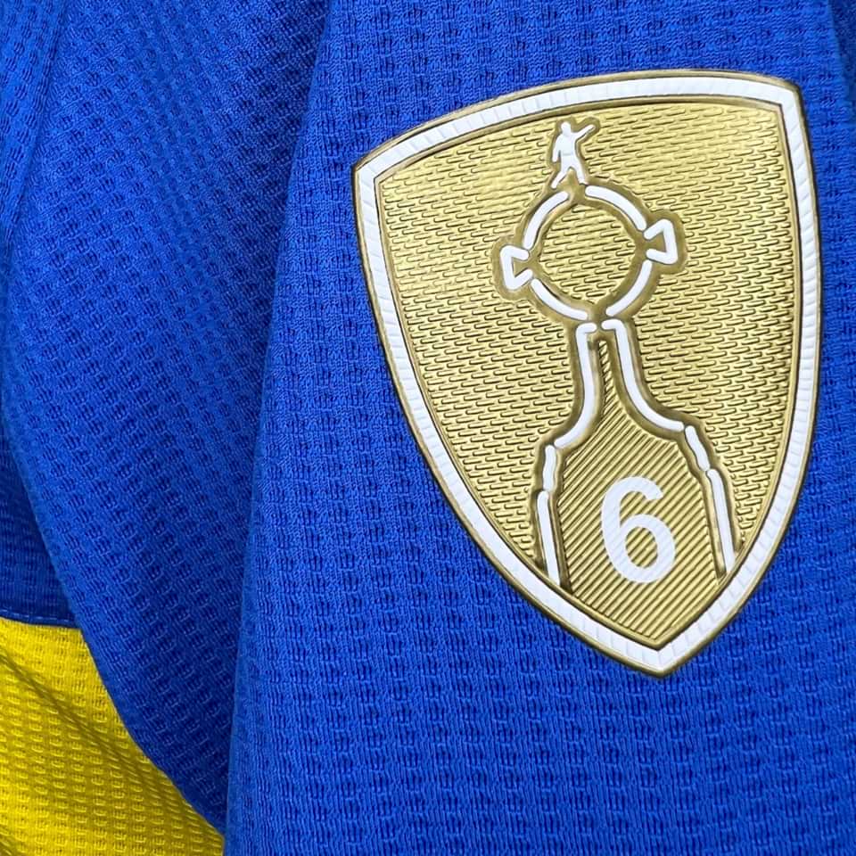Patches: Parche Conmebol Libertadores en manga derecha, parche Libertadores #6 en manga izquierda