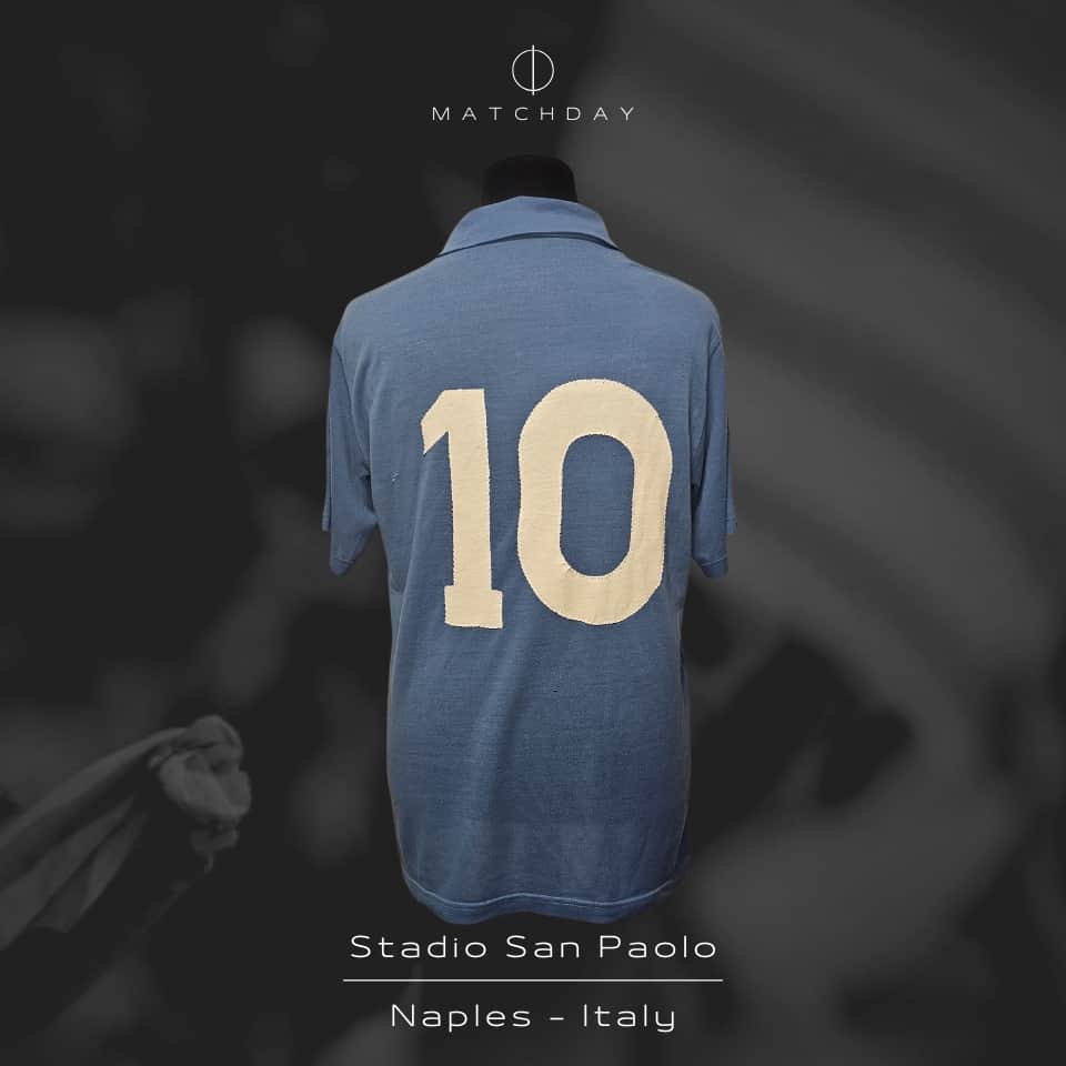 La camiseta con tela de verano, que fue utlizada en muy pocos partidos, fue obtenida a través de un amigo cercano de Maradona en la época de Napoli, y fue adquirida por un reconocido coleccionista Argentino quién se la entregó a Matchday para ser subastada.