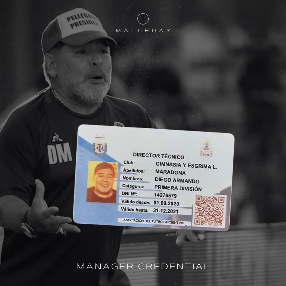 Diego Armando Maradona – Carnet DT – Manager Credential – Gimnasia y Esgrima LP