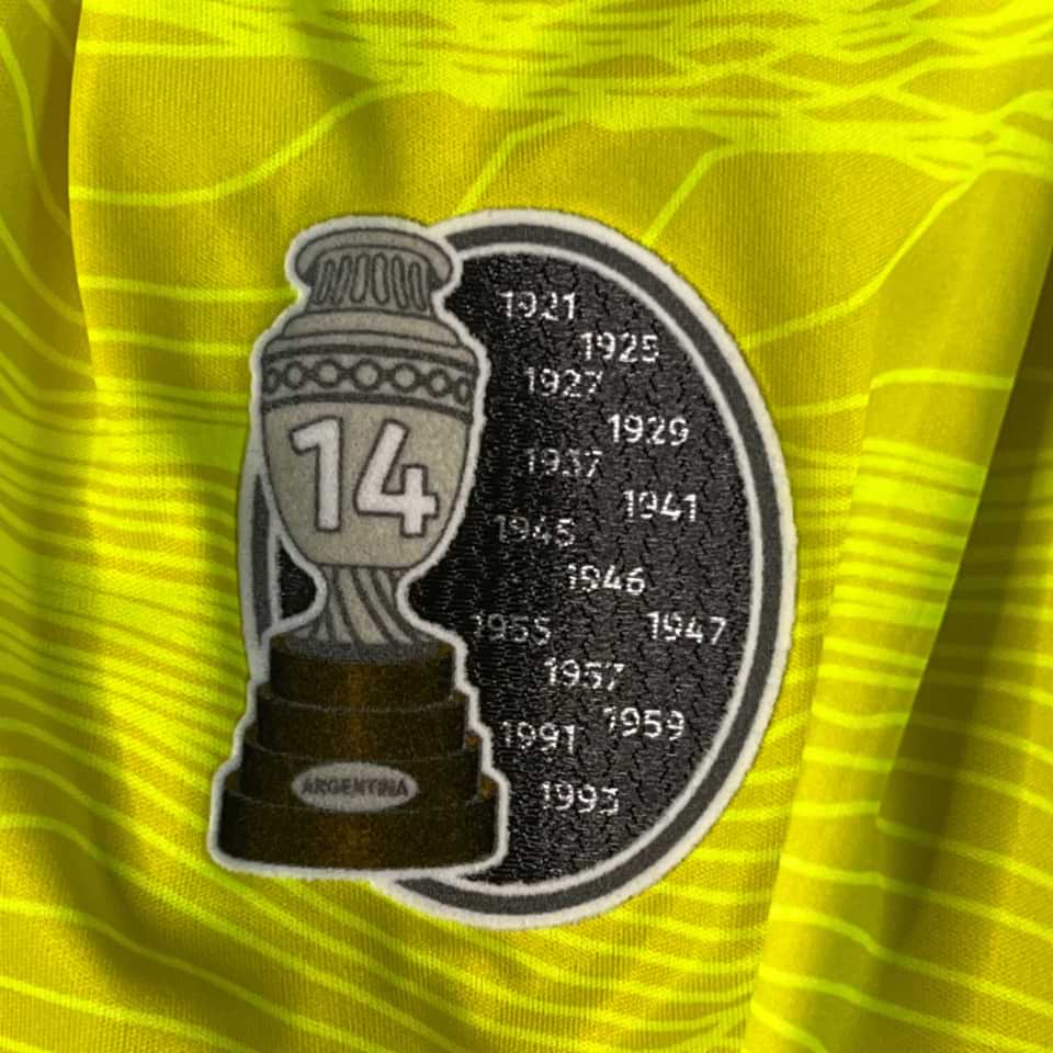 Patches: Parche Copa America Brasil 2021 estampado en la manga derecha y parche Copas Americas ganadas en la manga izquierda. Matchday estampado en el pecho