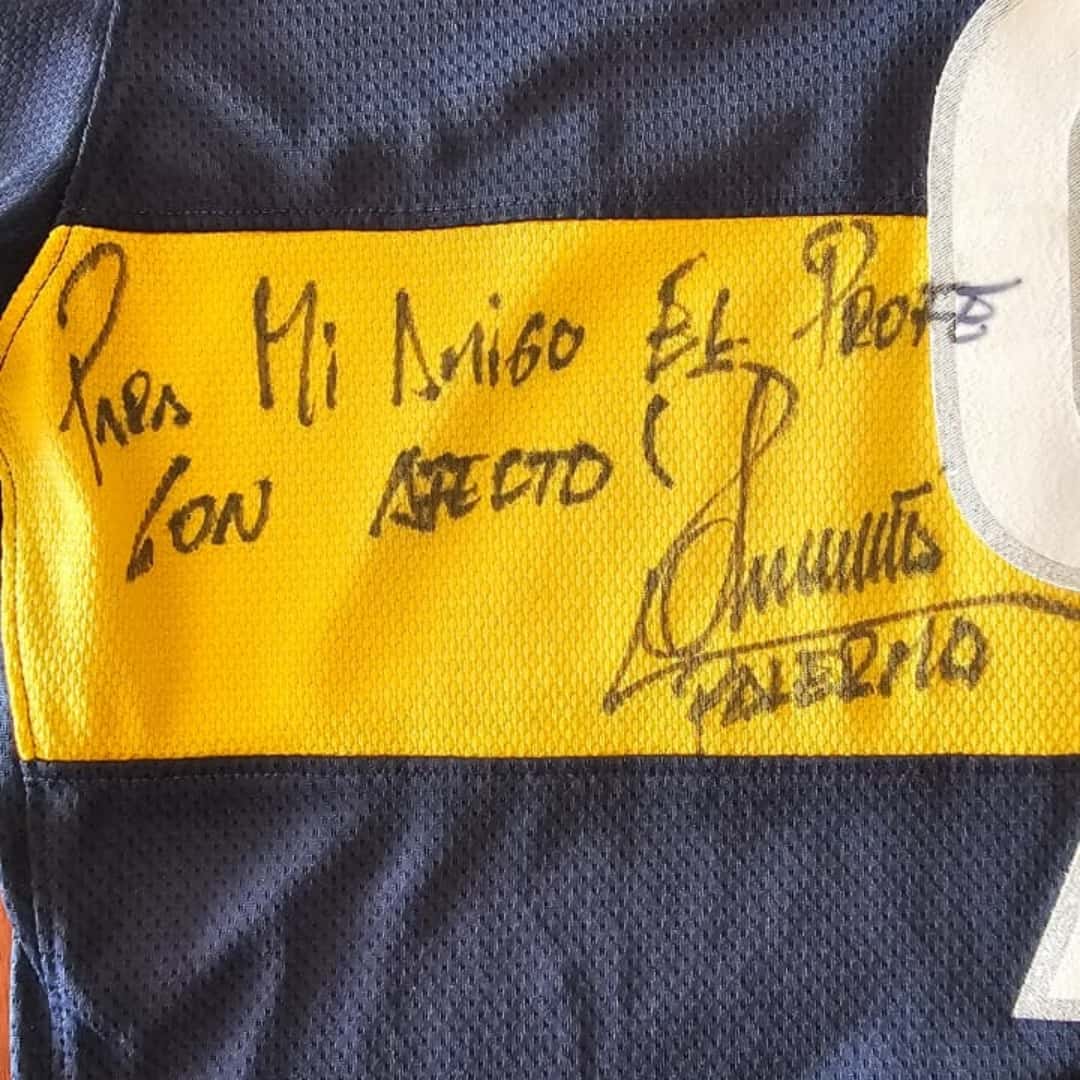La camiseta proviene directamente de un integrante del cuerpo técnico de Alfio Basile de ese momento.