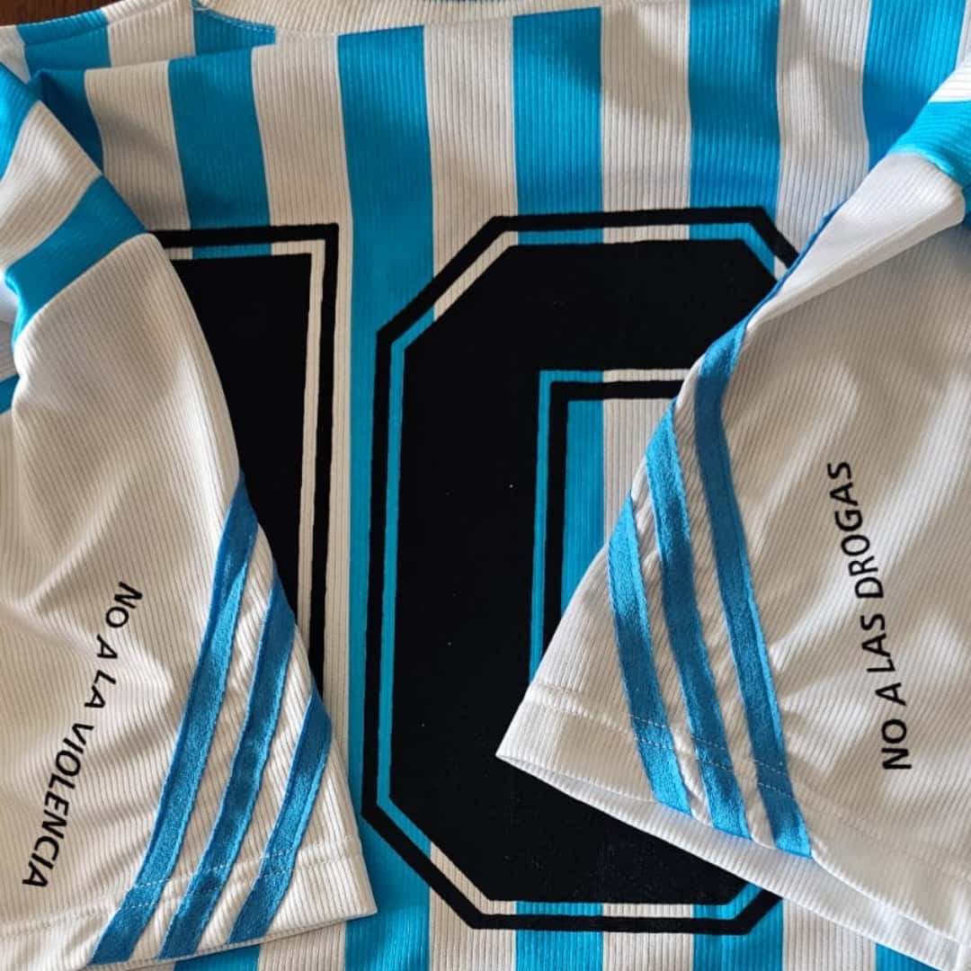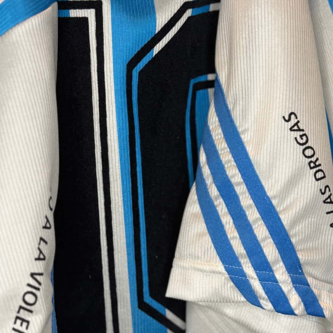 La camiseta proviene directamente de un integrante del cuerpo técnico de Alfio Basile de ese momento.