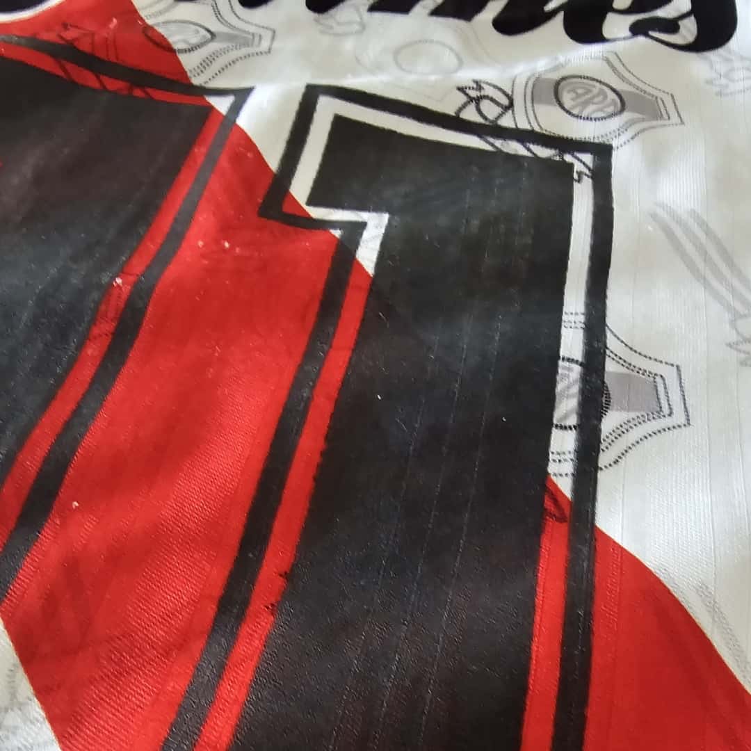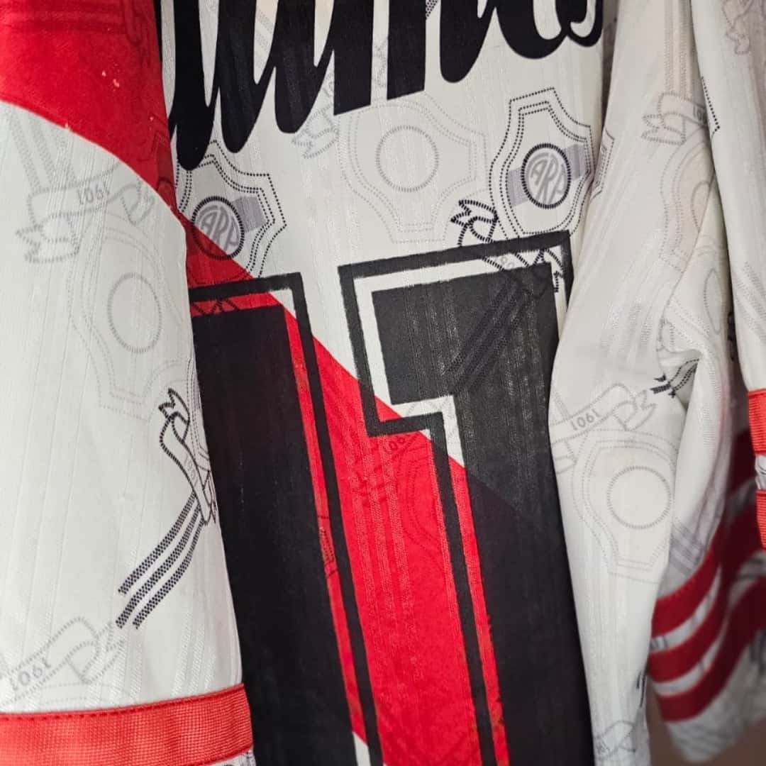 Camiseta muy buscada dentro del coleccionismo de River, por tener el número con “filete” utilizada solo en 3 partidos en la historia.