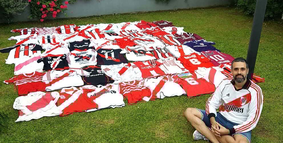 Emiliano Abreu es fanático del Millonario y posee una impactante colección de camisetas utilizadas por futbolistas del club de Núñez. Desde una de 1920 a una del Beto Alonso del 86 y las de los juveniles que fueron campeones en el 75